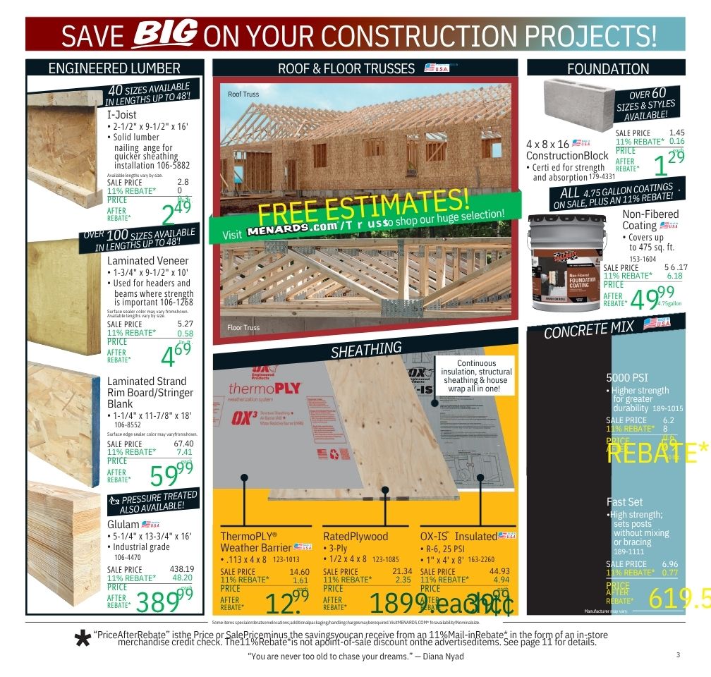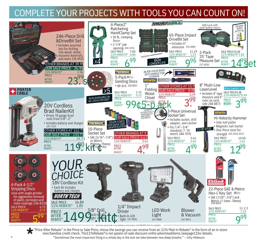 Looking for tools or supplies? The Menards weekly ad often has big savings on drills, hand tools, screws, wood, and other hardware. Builders and DIY fans can find deals on all kinds of building materials. Check your local flyer to get the best price near you.